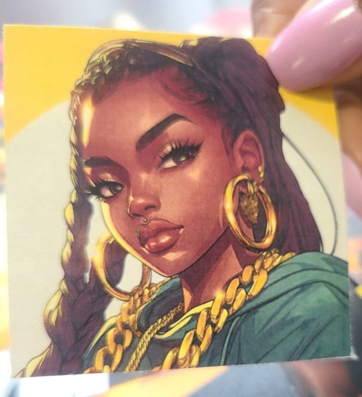 - Printed on semi-glossy sticker paper