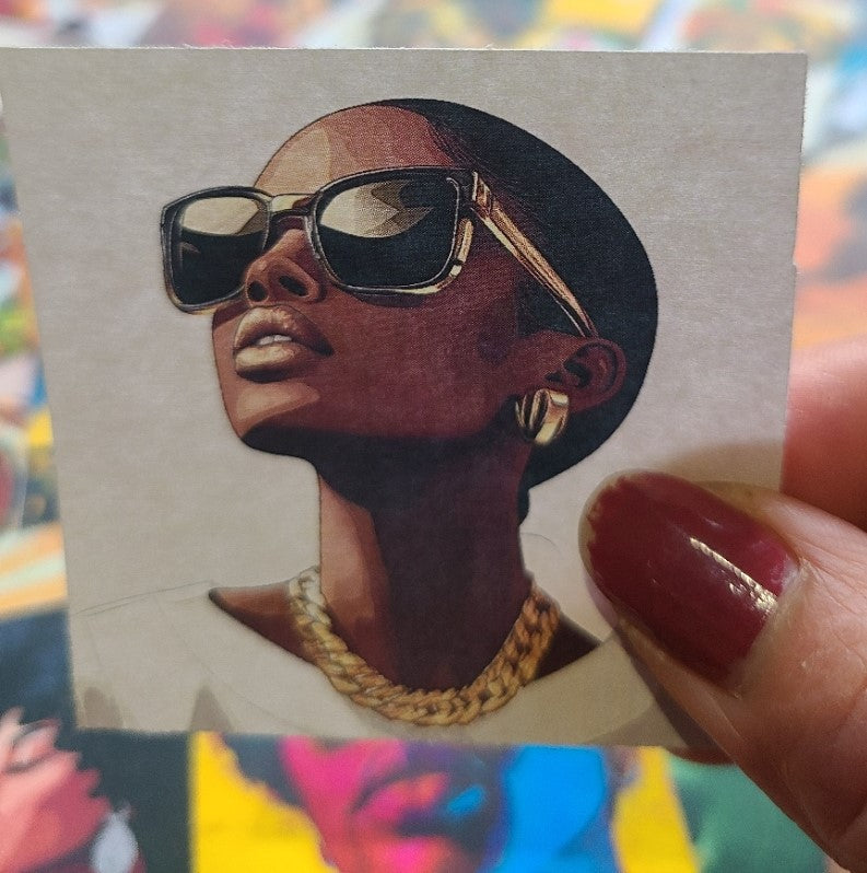 - Printed on semi-glossy sticker paper