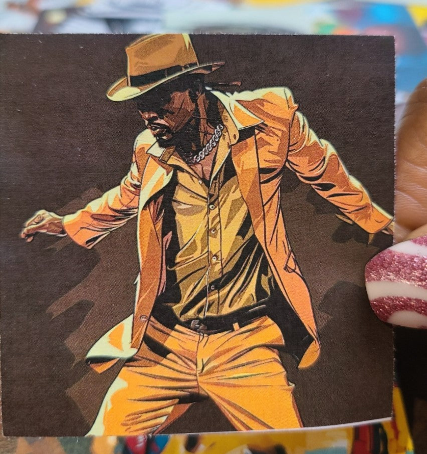 - Printed on semi-glossy sticker paper