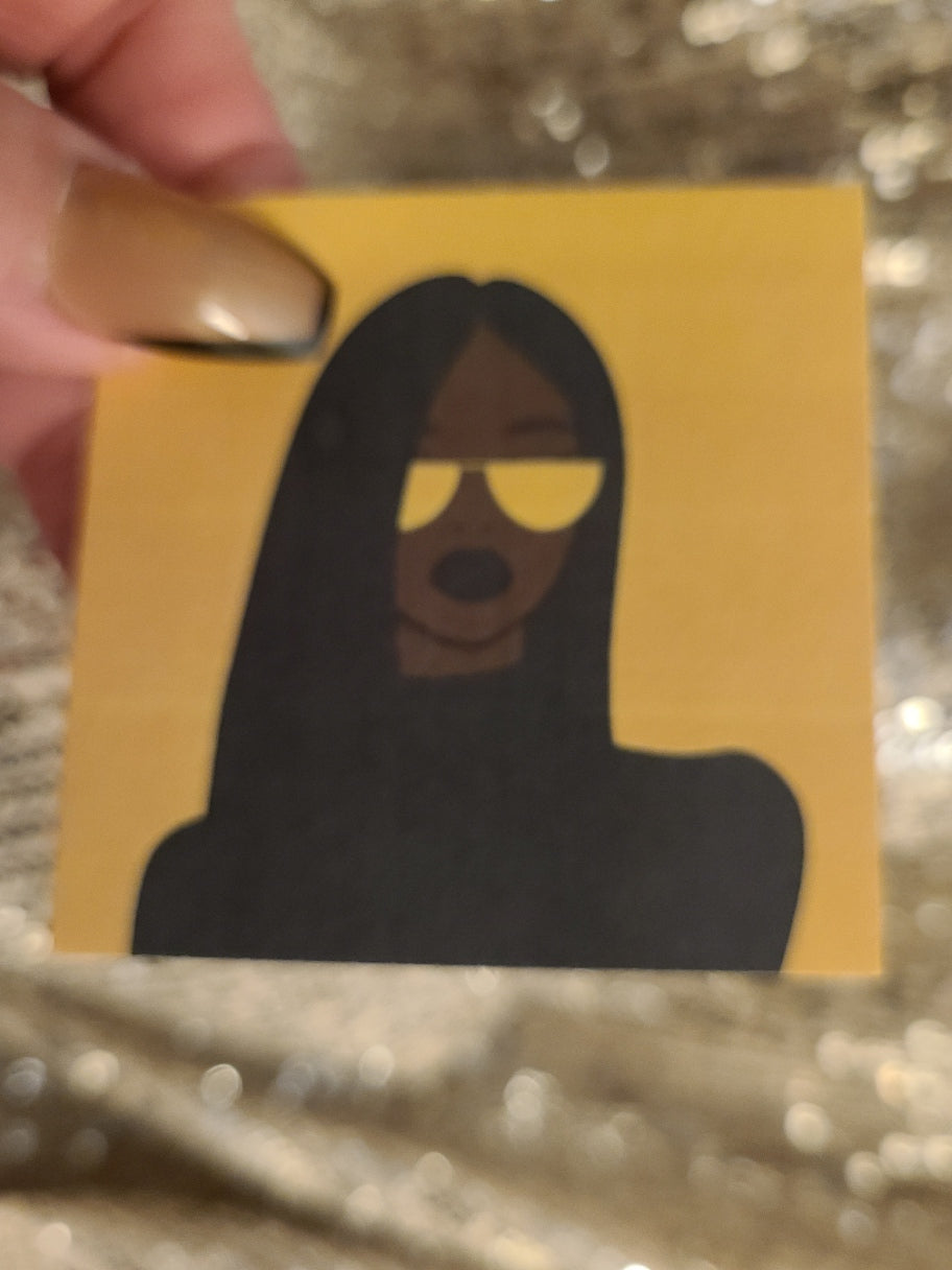 - Printed on semi-glossy sticker paper