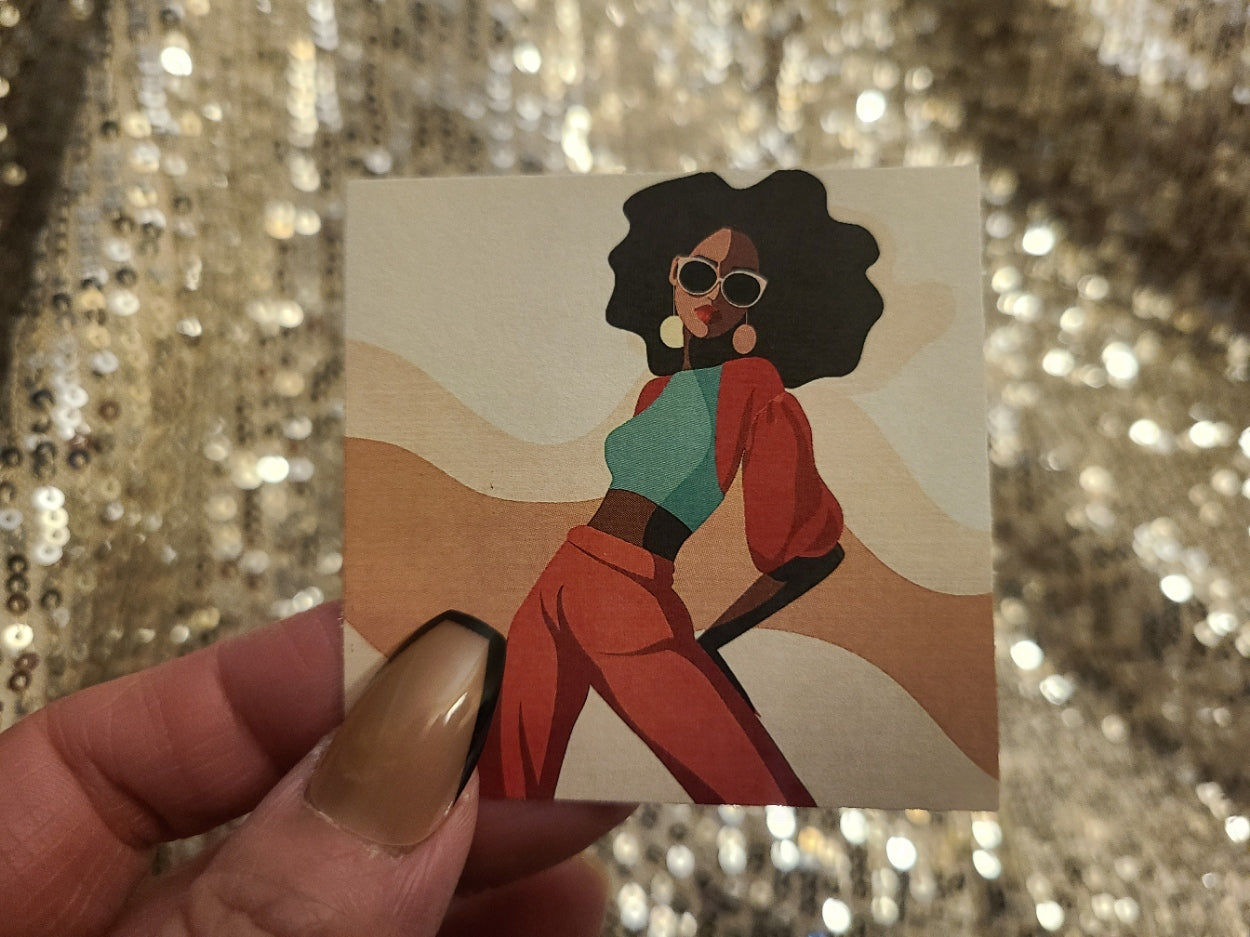 - Printed on semi-glossy sticker paper