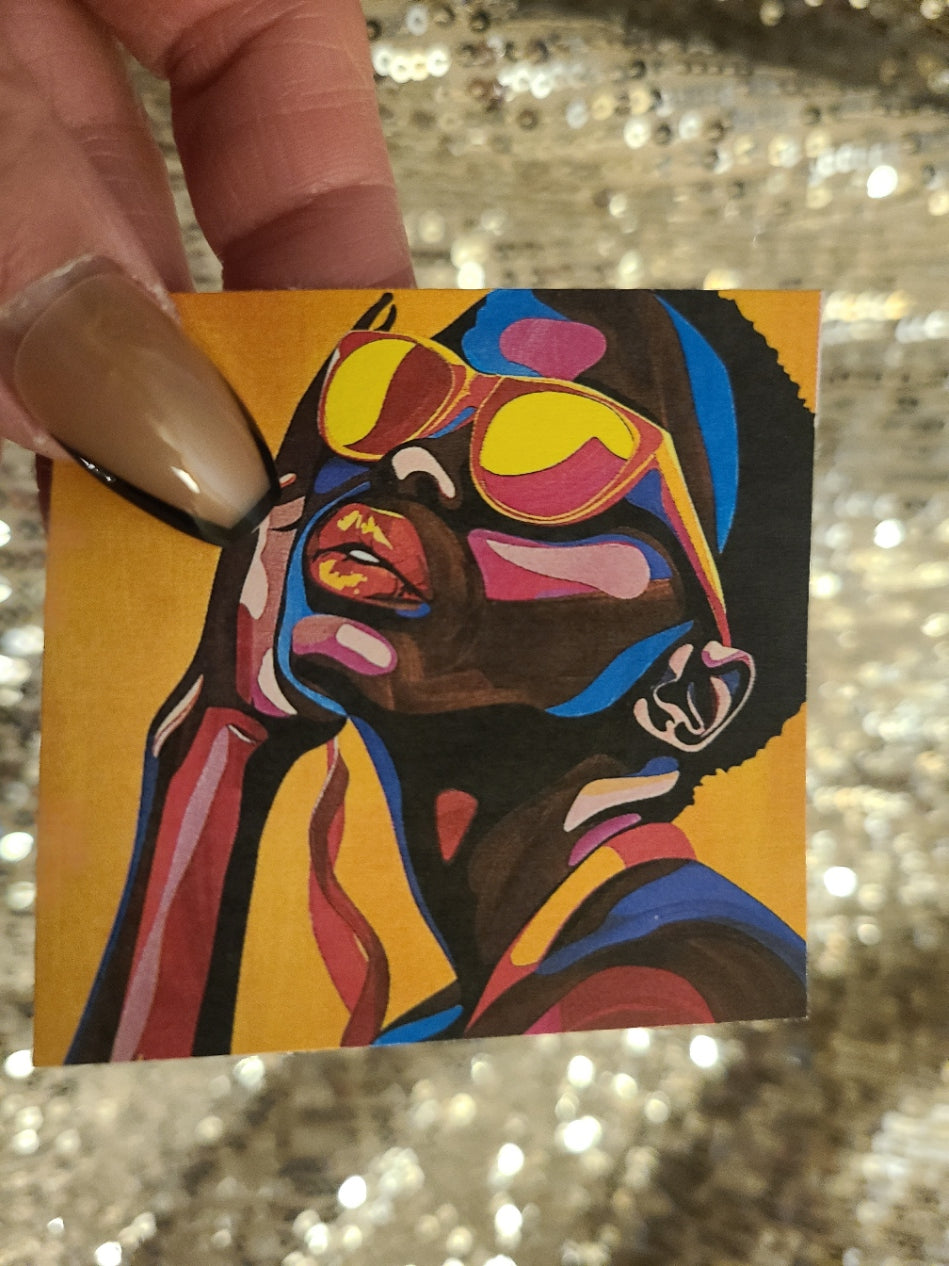 - Printed on semi-glossy sticker paper