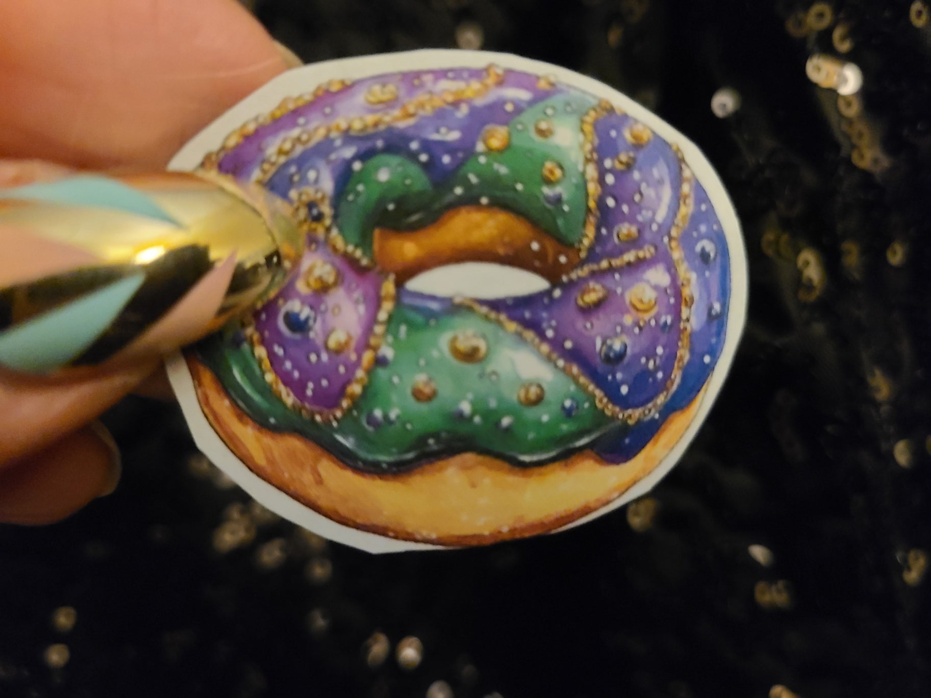 - Printed on semi-glossy sticker paper