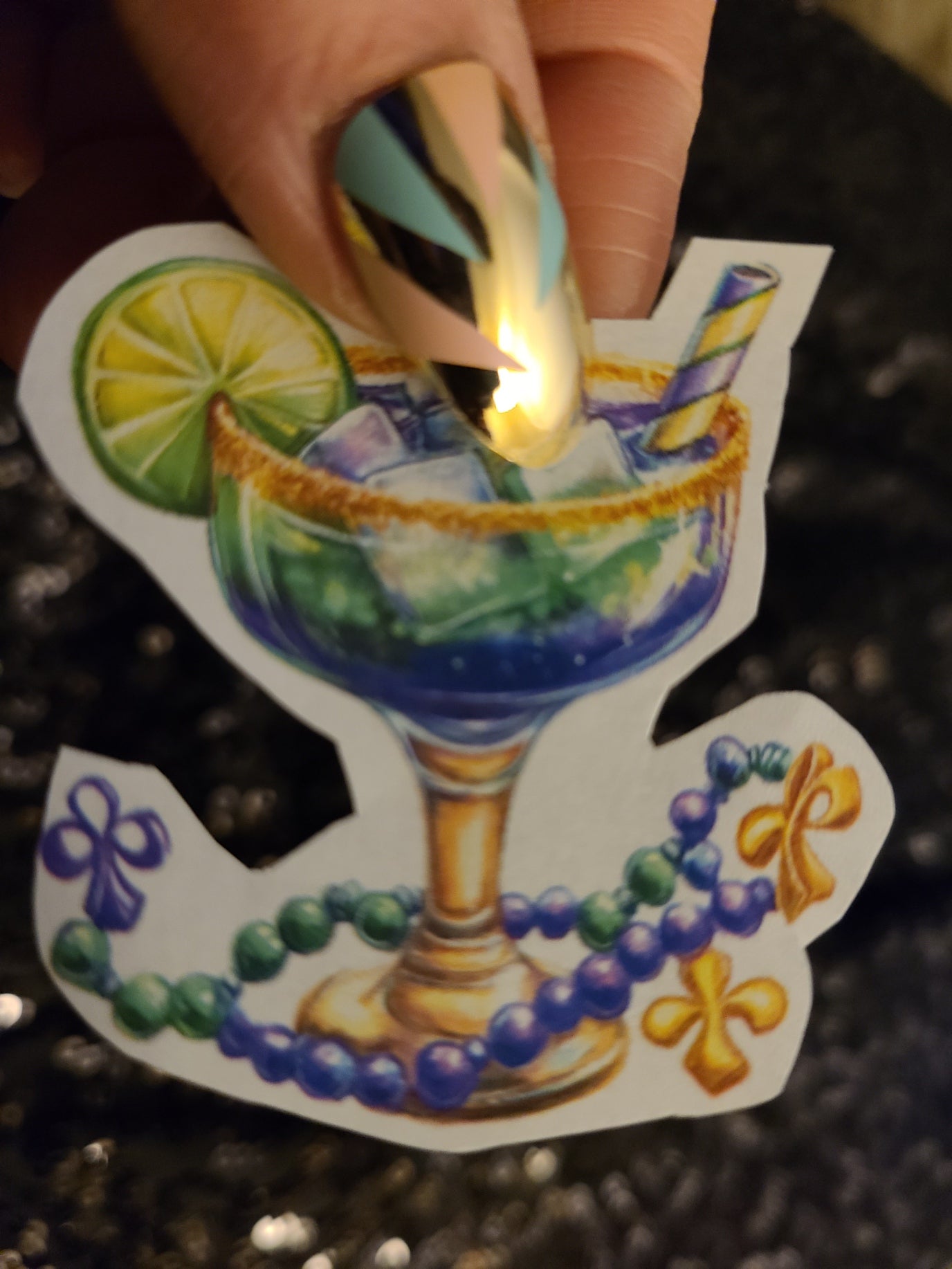 - Printed on semi-glossy sticker paper