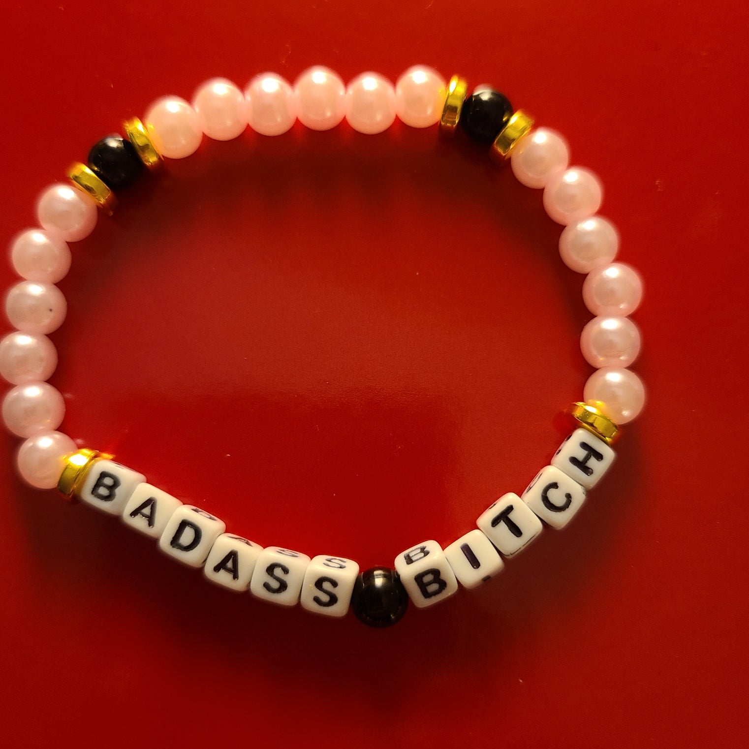 Bracelet BADASS BITCH - acrylic beads & glass obisidian beads