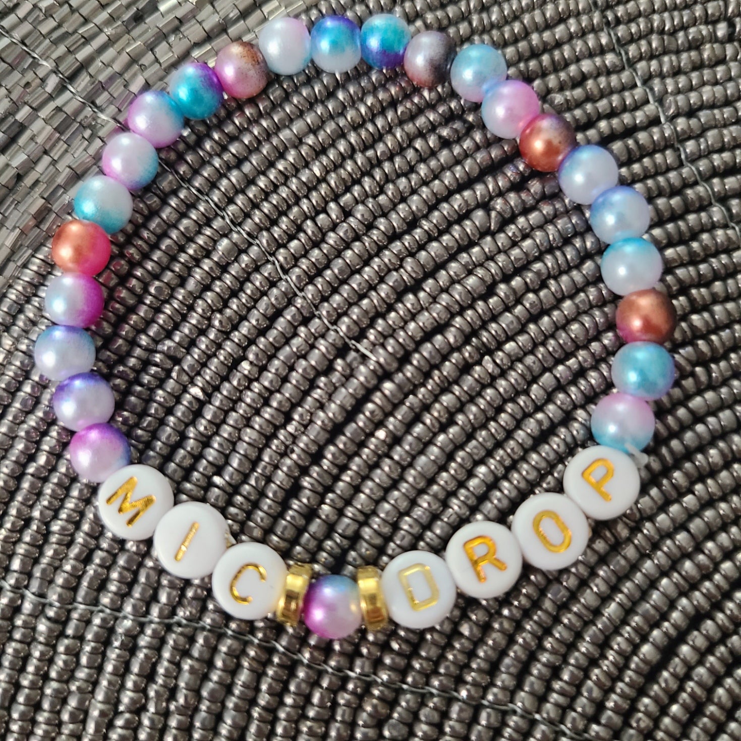Pink, blue, gold, purple gradient acrylic beads with gold accents