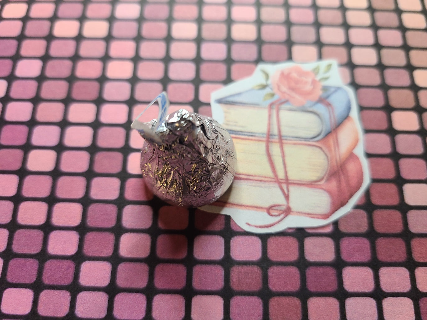Valentine Stack of Books topped with a Rose